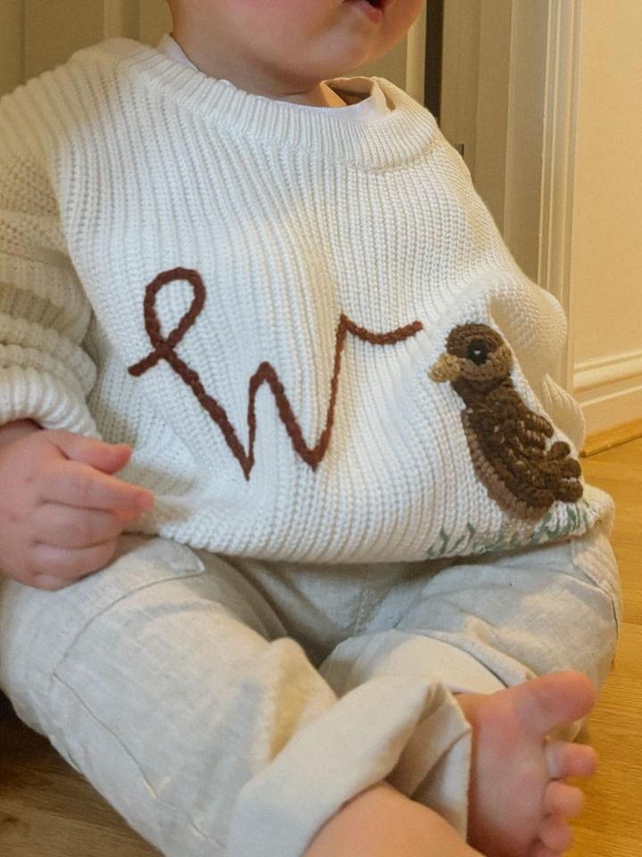 Thank you so much for your lovely design. Wren loved the back so much he wouldn’t let me put the jumper on him until he felt every detail of it. The perfect jumper for him 😍
