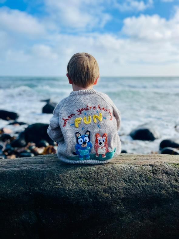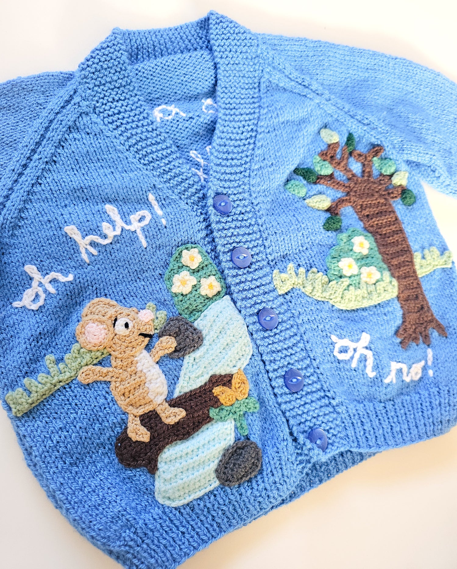 Thank you so much for your lovely design. Wren loved the back so much he wouldn’t let me put the jumper on him until he felt every detail of it. The perfect jumper for him 😍